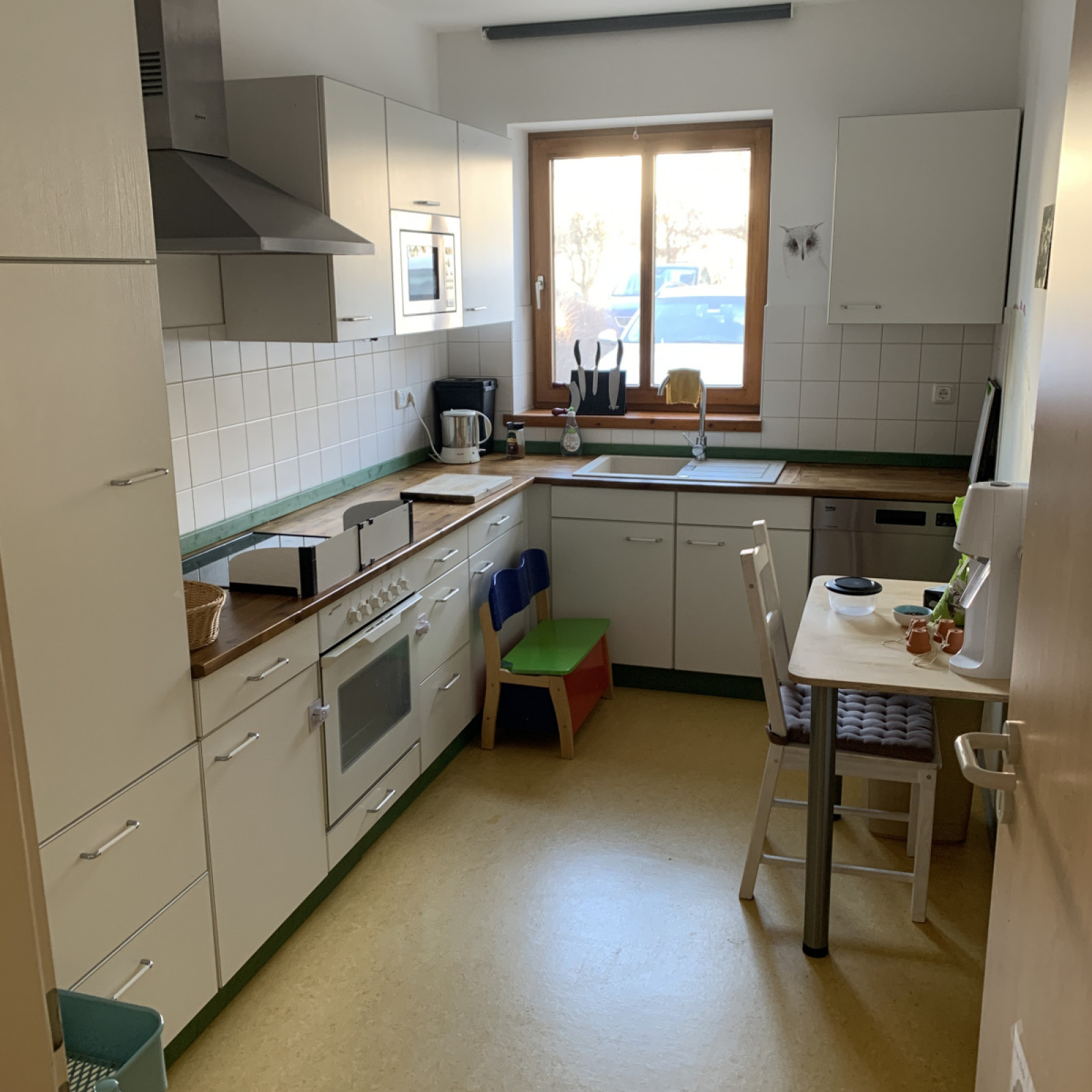 An dem Tisch werden alle Mahlzeiten gemeinsam eingenommen. Für uns ist es wichtig, dass nicht ständig nebenbei und unterm spielen / gehen gegessen wird, darum haben wir feste Essenszeiten wo alle zusammen essen.